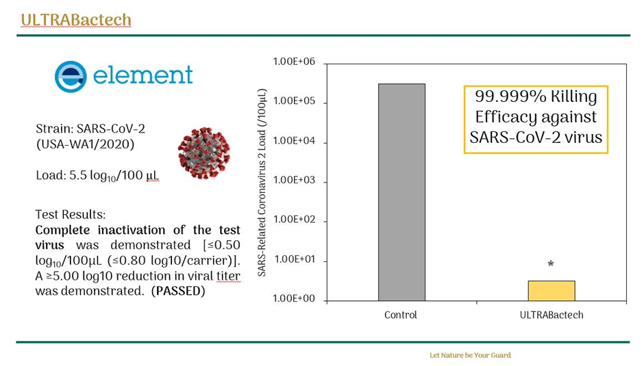 UltraBactech has 99.999% killing efficacy against SARS-CoV-2 virus.